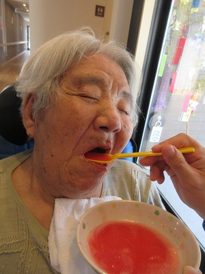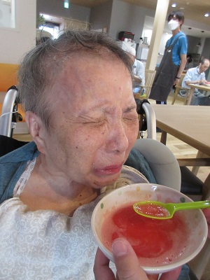 「甘ーい。」の声に交じって、「冷たーい!」の声。