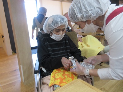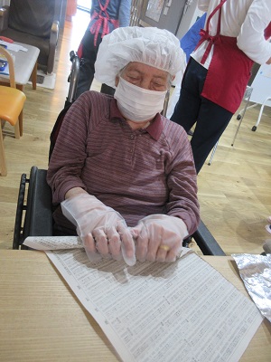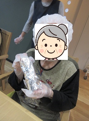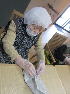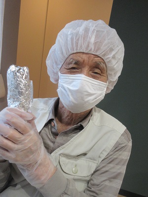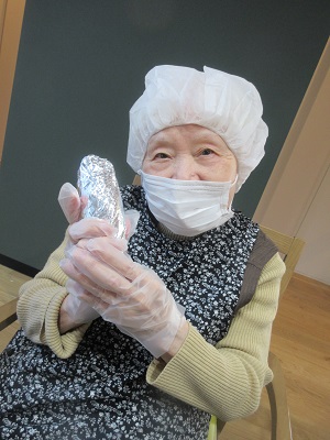 さつま芋を新聞紙で巻きます~!!