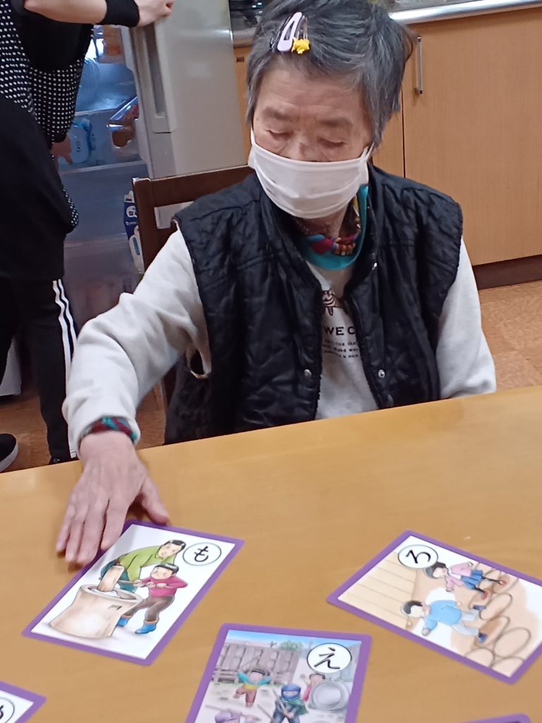 2024.02.28 すずらん通り 脳トレ大判かるた 今日は、脳トレ 大判カルタを 実戦しました(^^)/ 昔を懐かしみながら 取り札を 探して取って 競いました(*´▽`*) 楽しまれました(/・ω・)/ 記事一覧へ戻る 各施設ごとのすずらん便りはこちらから