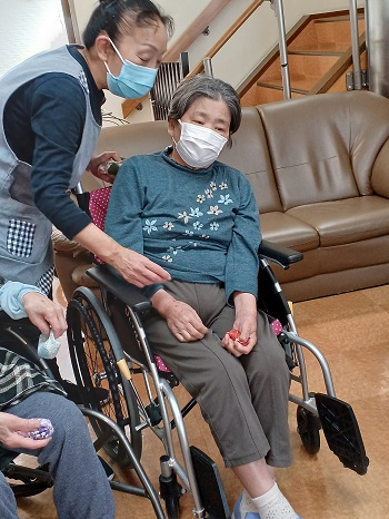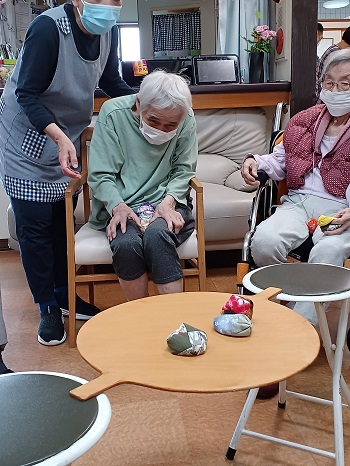 2024.05.27 すずらん通り お手玉バランスゲーム 今日は、お手玉ゲームを実践しました(/・ω・)/ イスとイスの間に板を置いて お手玉を投げていくゲームですが はじすぎると、すぐ倒れたり 真ん中に沢山積んでいくと 倒れなかったりと 楽しまれている様子でした(*´▽`*) 記事一覧へ戻る 各施設ごとのすずらん便りはこちらから