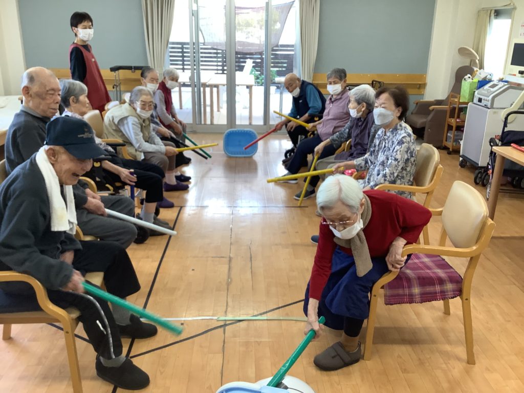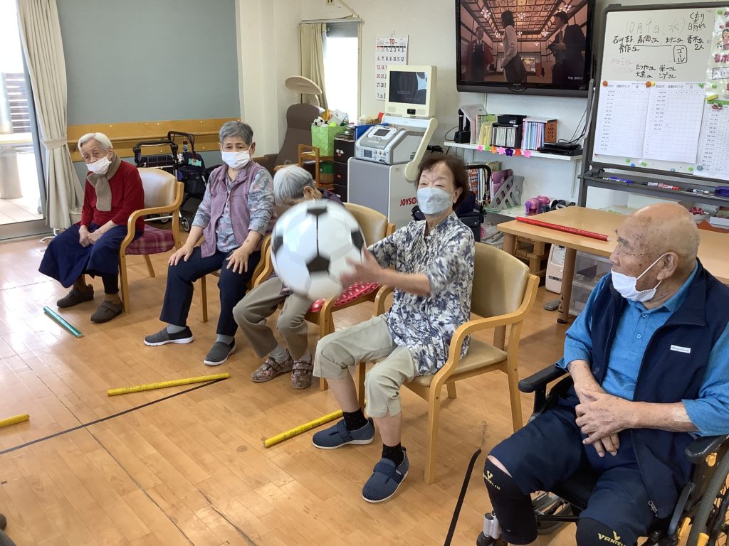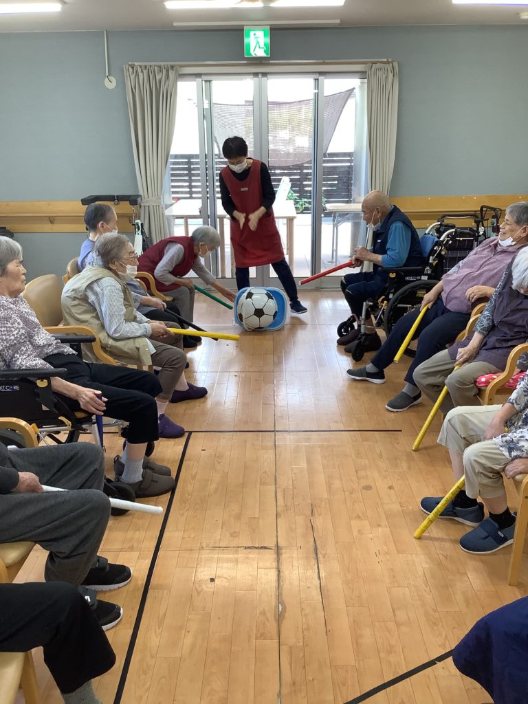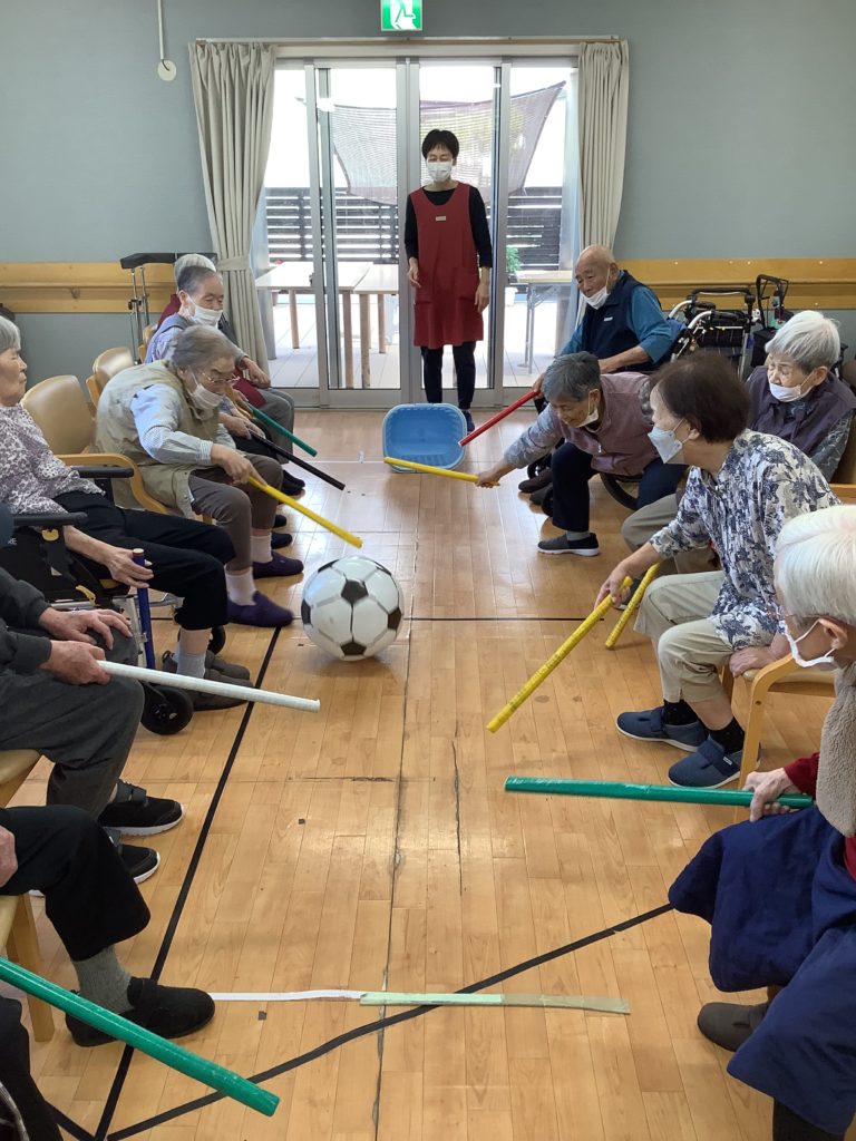 棒とボールが当たる音や、利用者さんの声が飛び交う中、ゴールを決めた赤チーム❗
