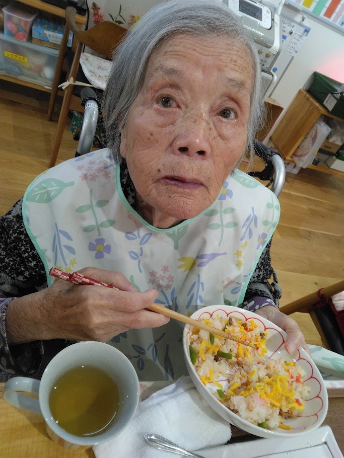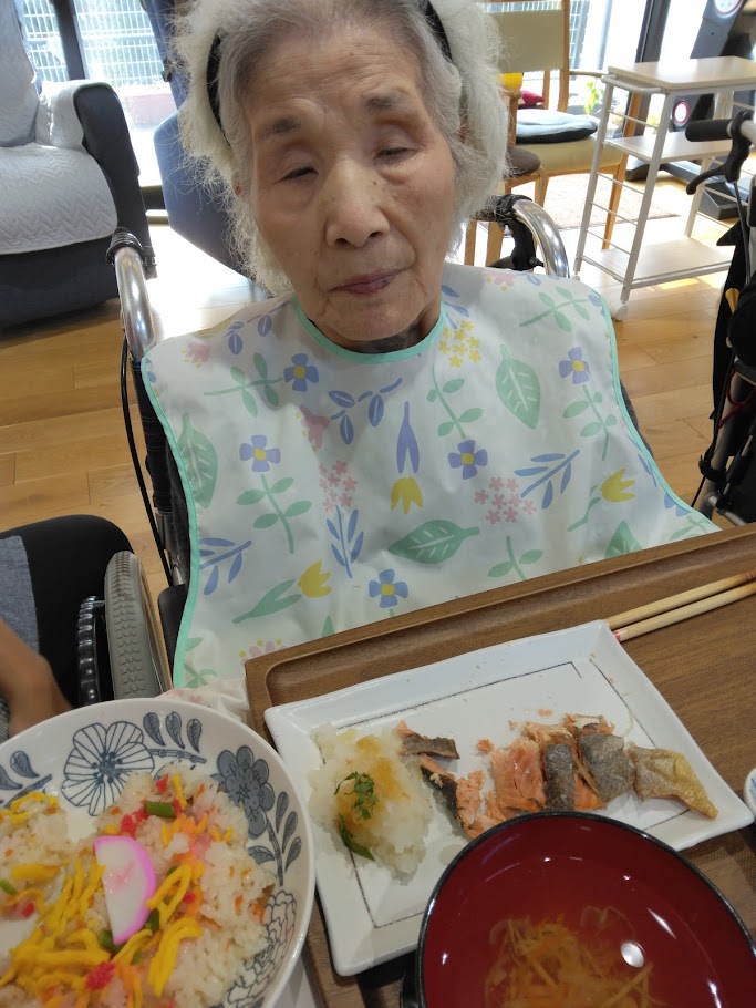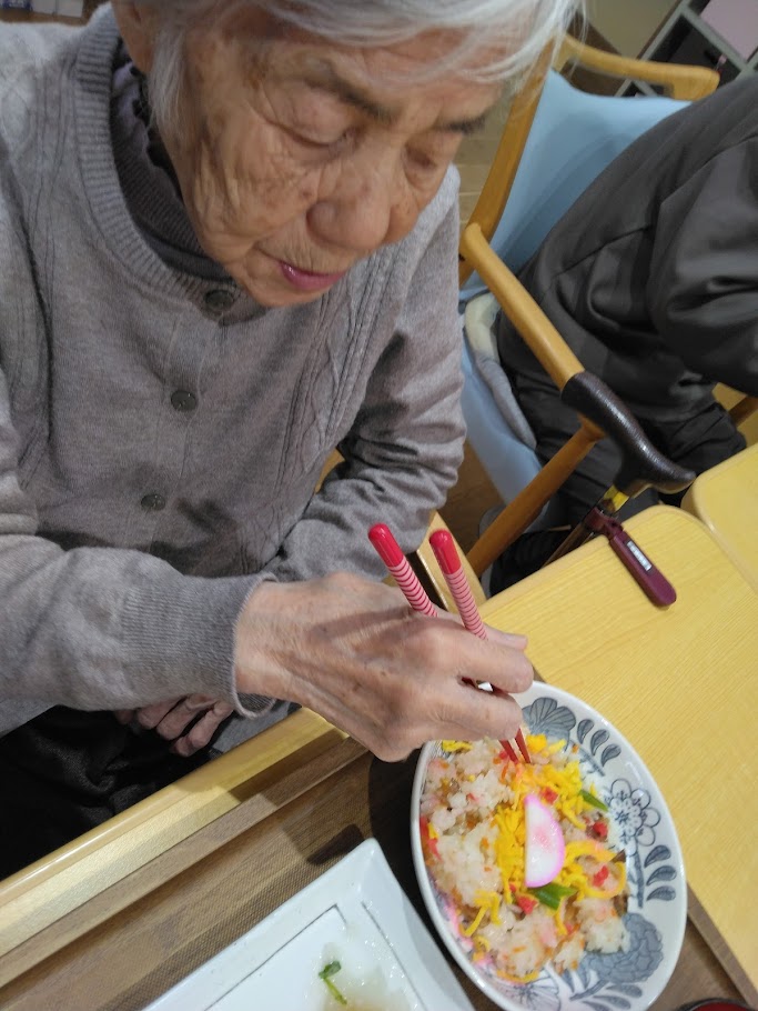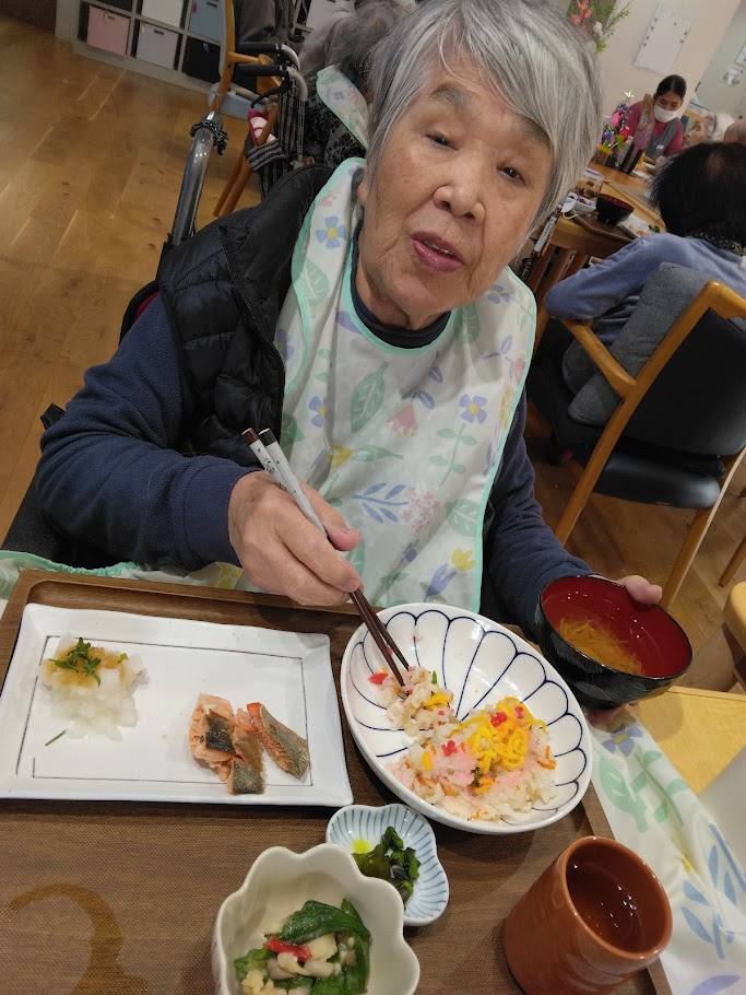 お昼ご飯はお祝いメニューのちらし寿司です🍣