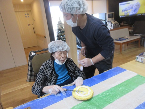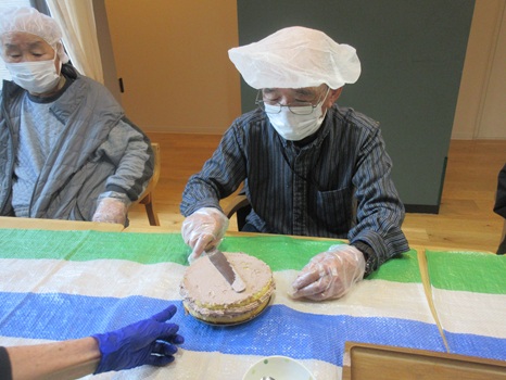レクリエーションでは、ケーキ作りをしました‼