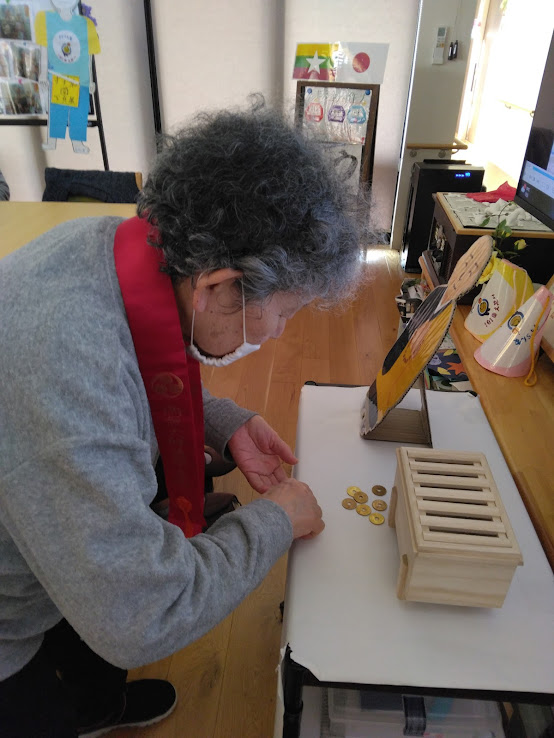 箱に入れたピンポン玉をポーンと飛ばして点数のついたカゴの中に入れていただきます✨