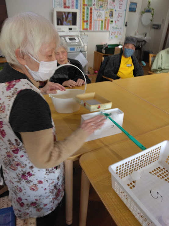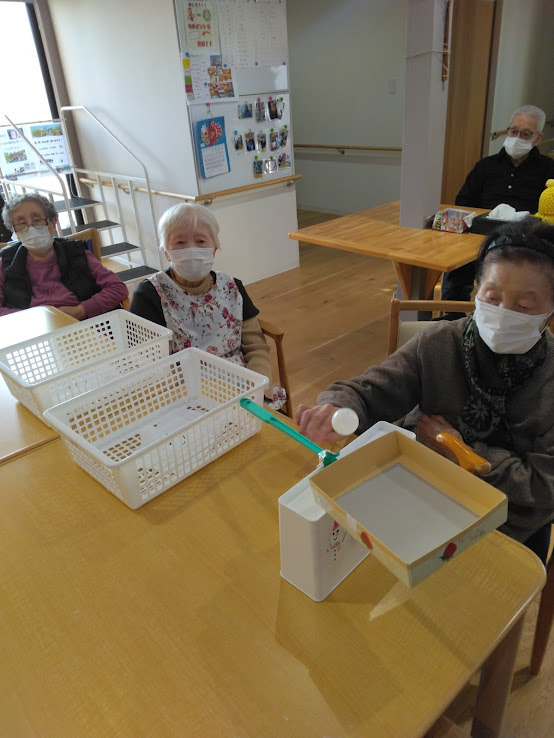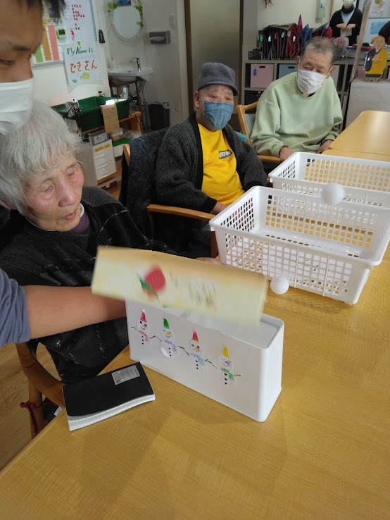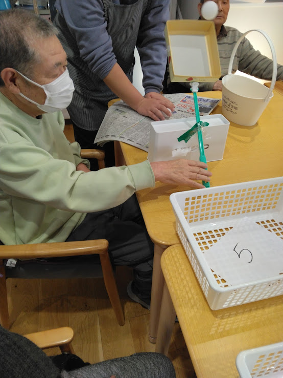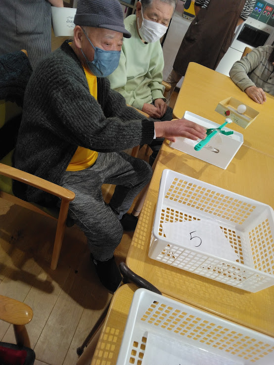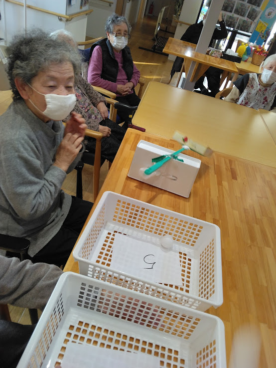 本日は…”ピンポン玉飛ばしゲーム”を行いました✨