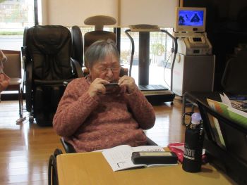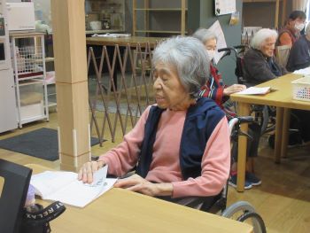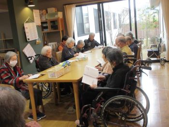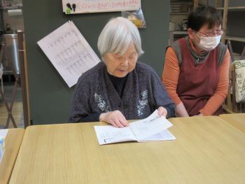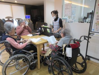 歌好きの利用者様が集まってキーボードの伴奏に合わせて大合唱してます。
