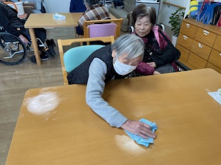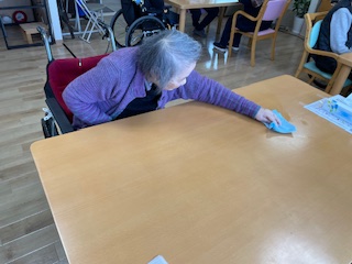 おやつ前のテーブル拭きも皆さんの中では日課となりつつあります