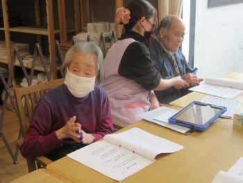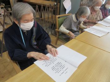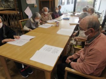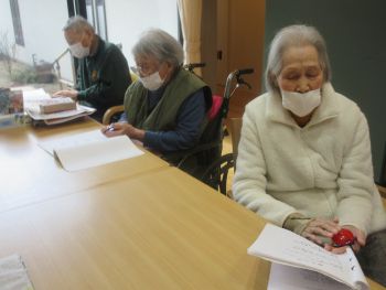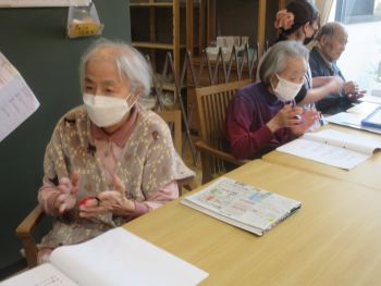 今回は季節の歌、唱歌、懐メロ、リズムに合わせてカスタネット演奏をしました。
