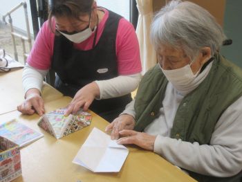 手指の運動のひとつで箱作りを行ってます。