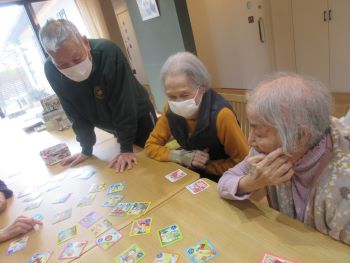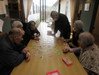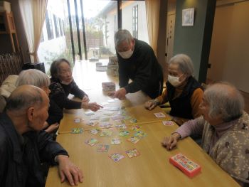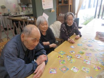 余暇の時間に脳トレでかるた取りとトランプゲームをしました。