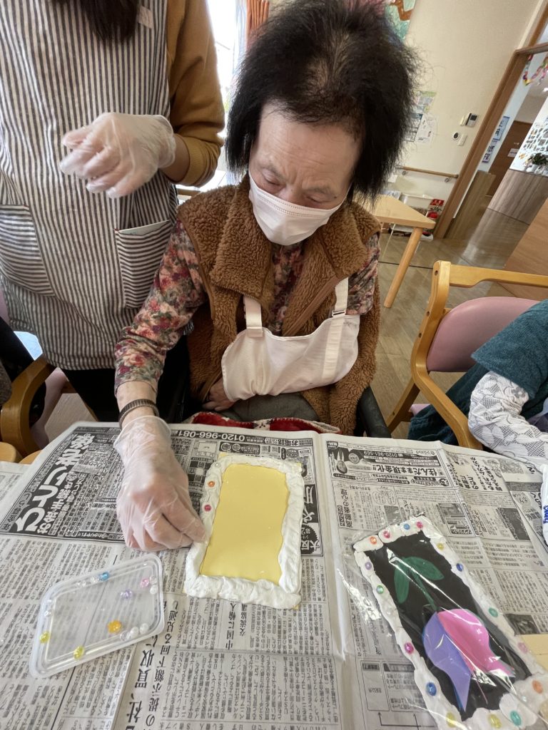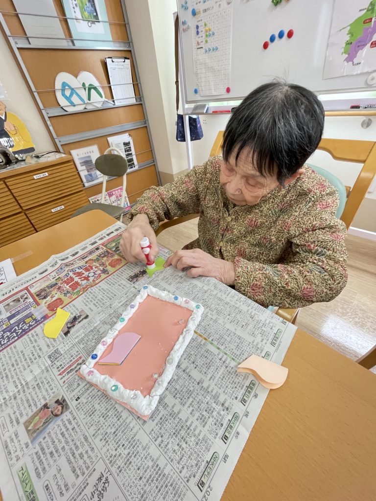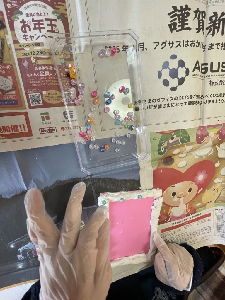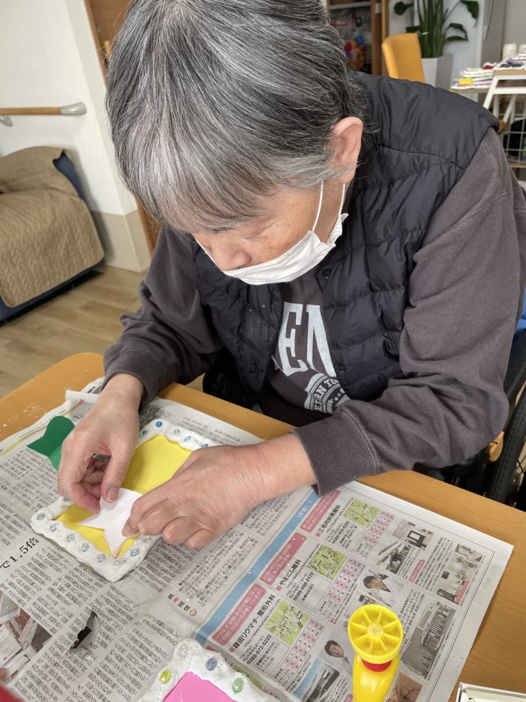 作ったフレームに飾り付けをします✨