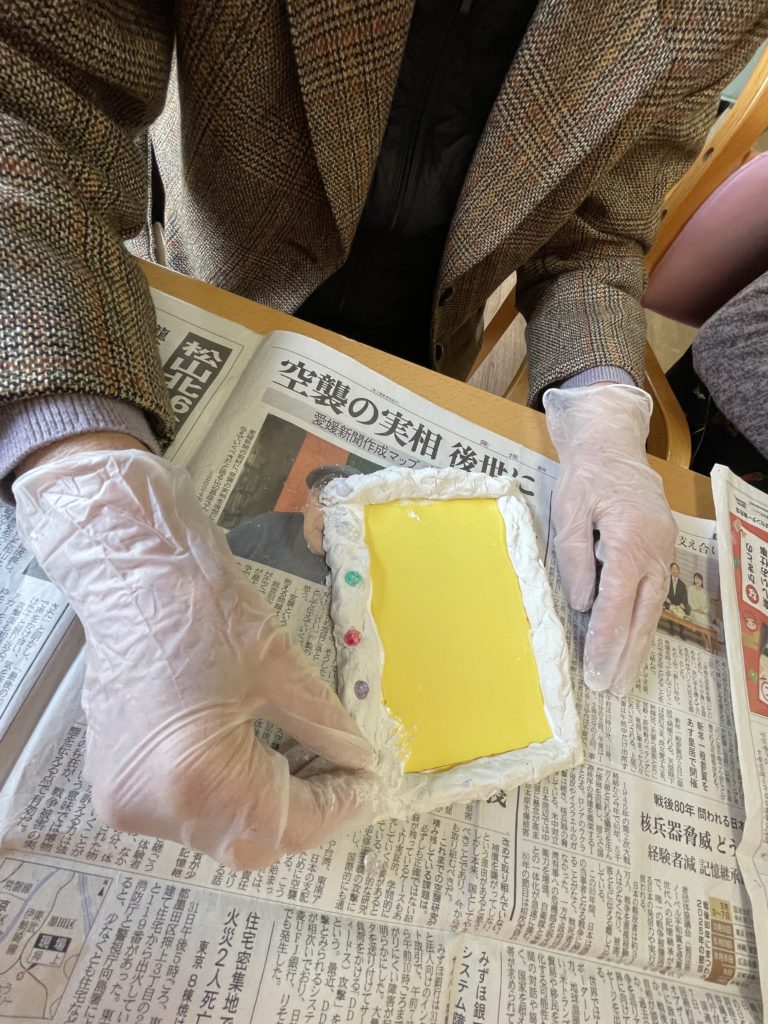 写真の様に紙粘土でフレームを作って