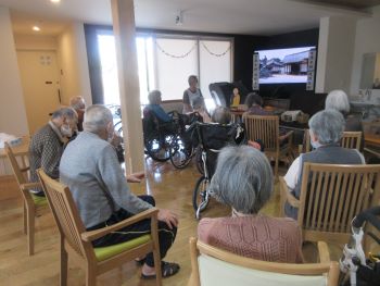 画面に映し出される美しい境内を見ながら、「昔、家族と一緒にお参りしたことがあるよ」と懐かしそうに語る利用者様もいらっしゃいました。