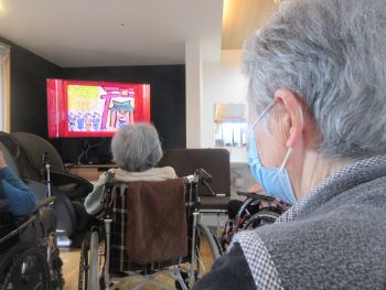 語り手の声や紙芝居の色彩に引き込まれ、皆さんじっと画面を見つめられていて、
