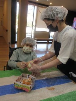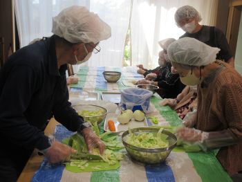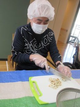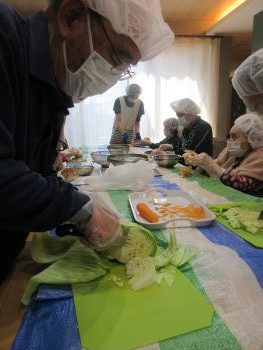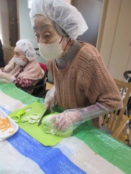 包丁を持つ手は少し震えていても、一つ一つ丁寧に、そして楽しそうに野菜を刻んでいらっしゃいました。