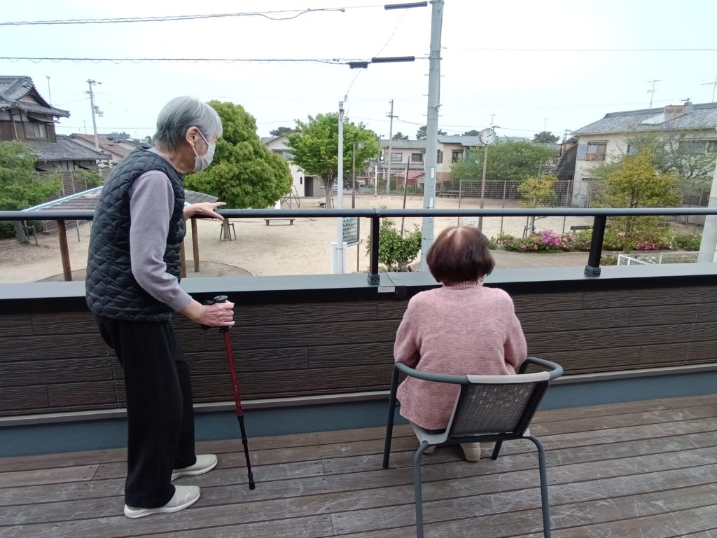 ウッドデッキに出て外の景色を観ながらお話を