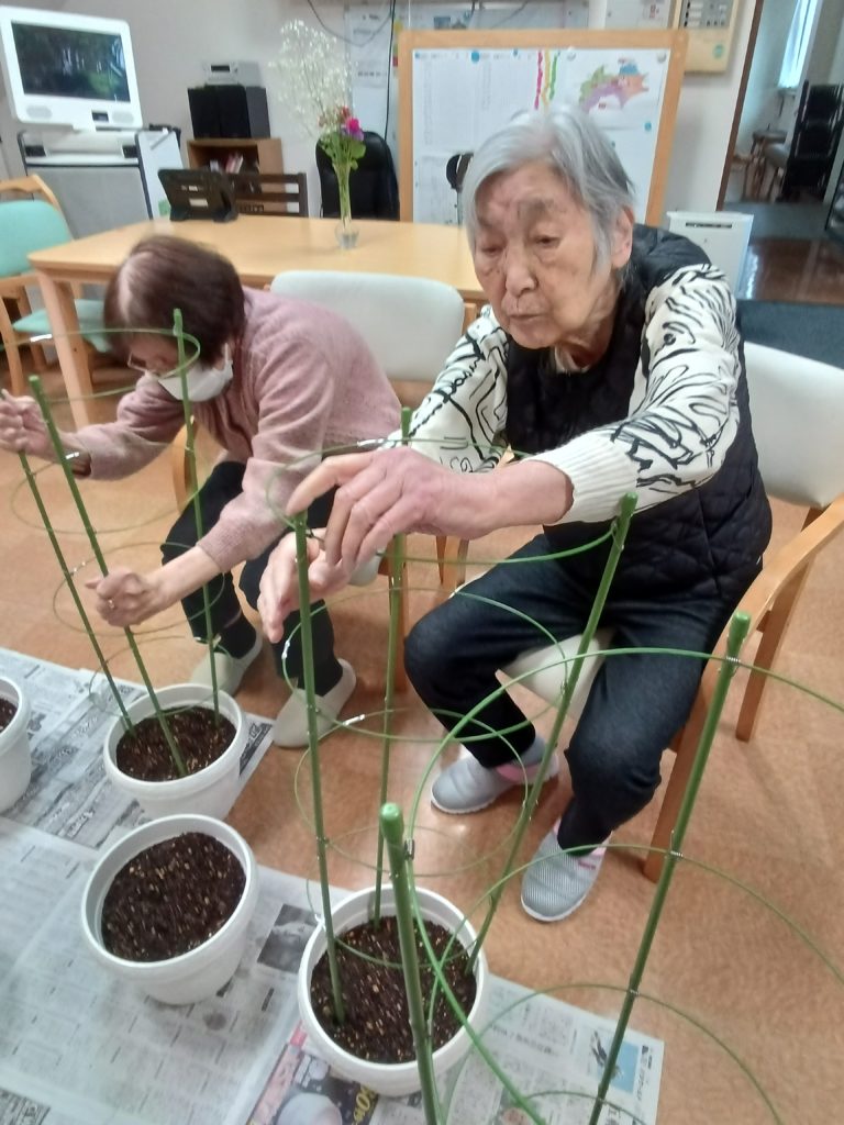 まずは支柱を組み立てて植木鉢に挿していきます。