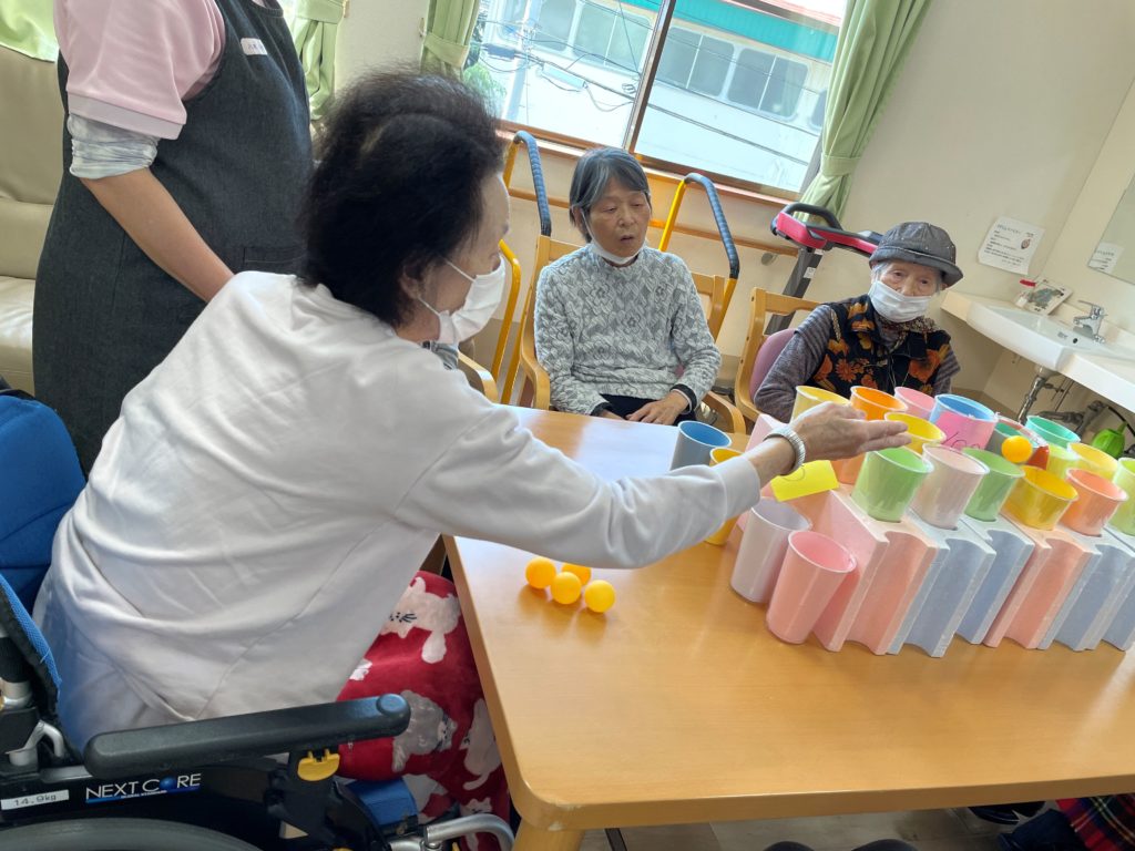 ピンポン玉をバウンドさせて、コップの中へポーーーーン!!