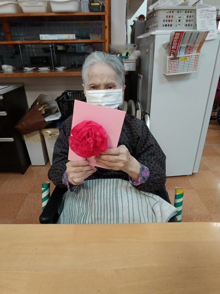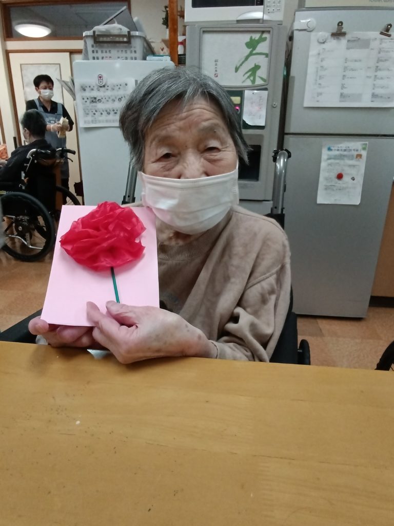 2025.05.14 すずらん通り ✿母の日✿ 5月11日 母の日 いつもありがとうございます(#^^#) 感謝を込めて手作りカーネーションと カードを送らせて頂きました🎵 記事一覧へ戻る 各施設ごとのすずらん便りはこちらから