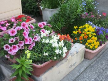 堀江海岸へ向かう途中、プランターの花々が満開になっているのを見て、自然の営みの素晴らしさを感じました。