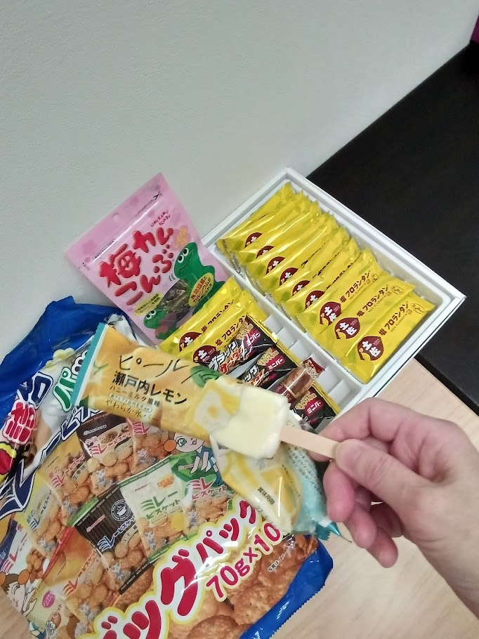お土産とお菓子とアイスで