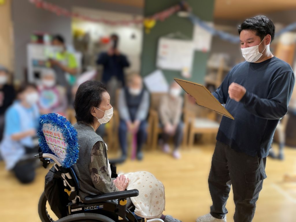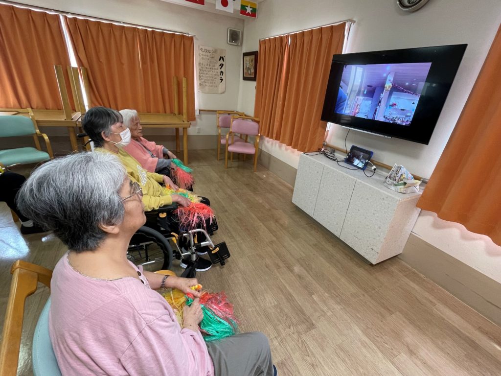 ホールにご利用者様が応援の準備をされています。