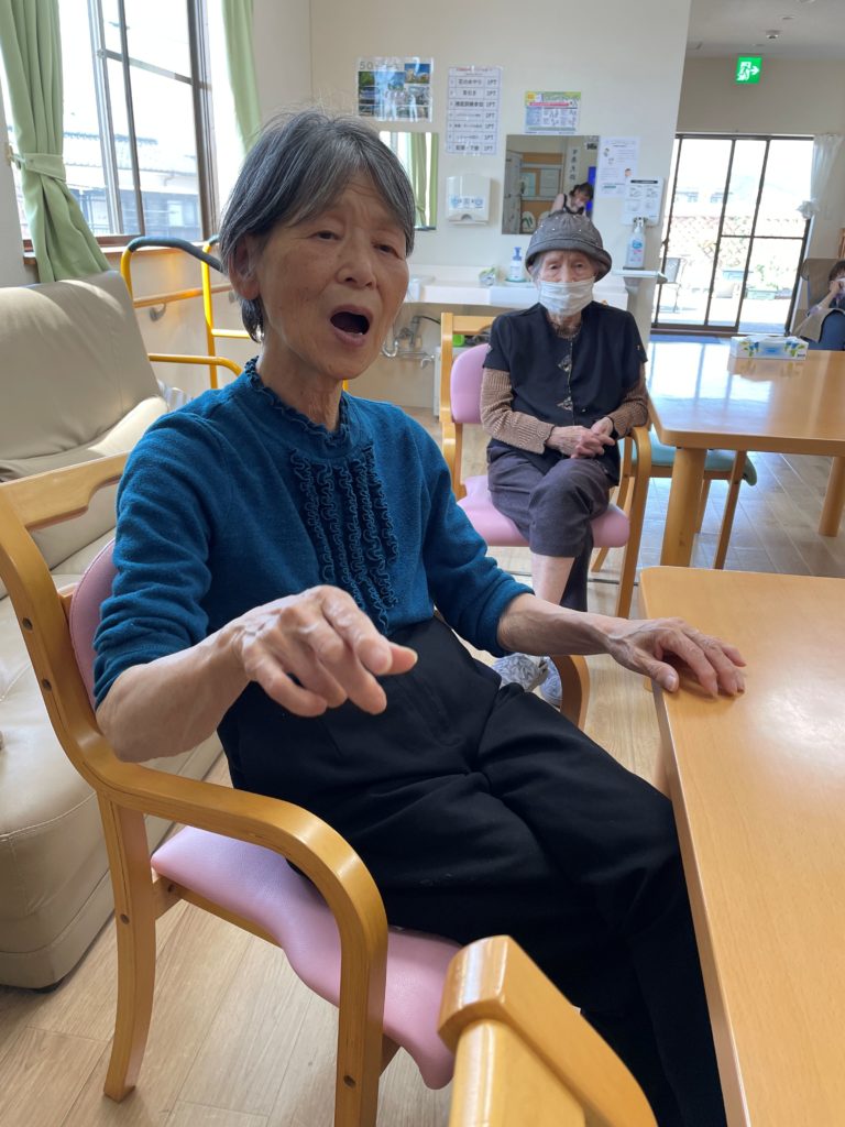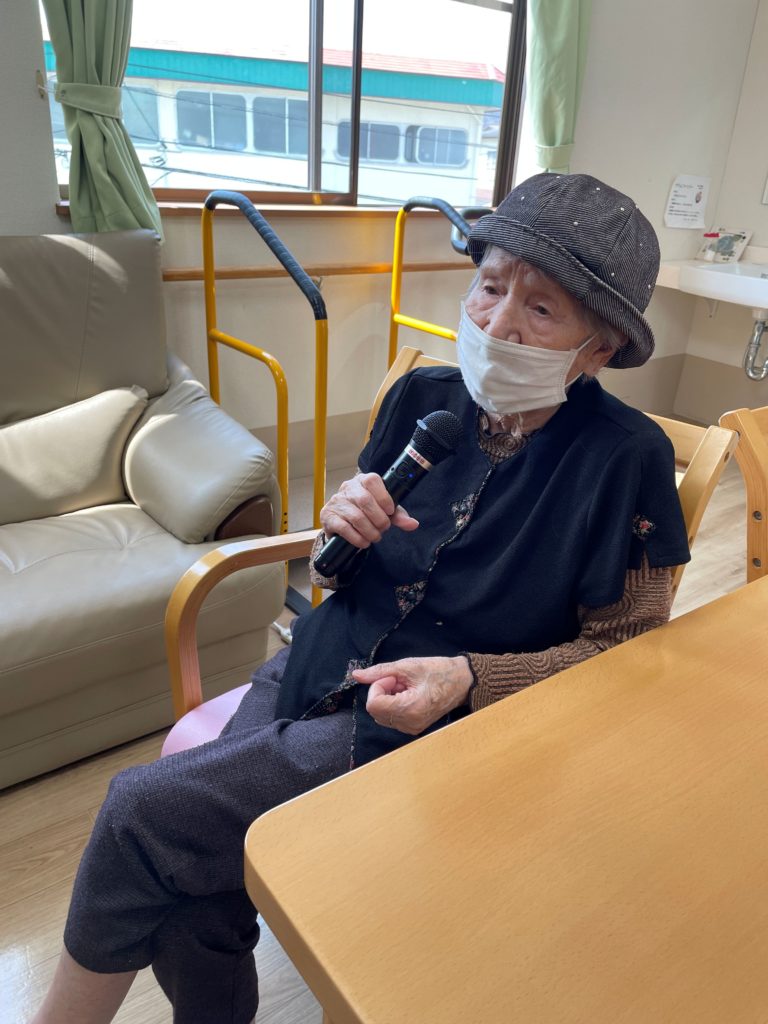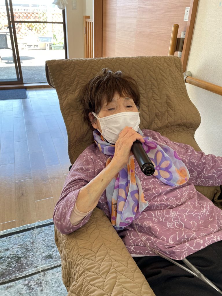ご利用者の皆様が順番に「瀬戸の花嫁」「高校三年生」etcを歌われていました。