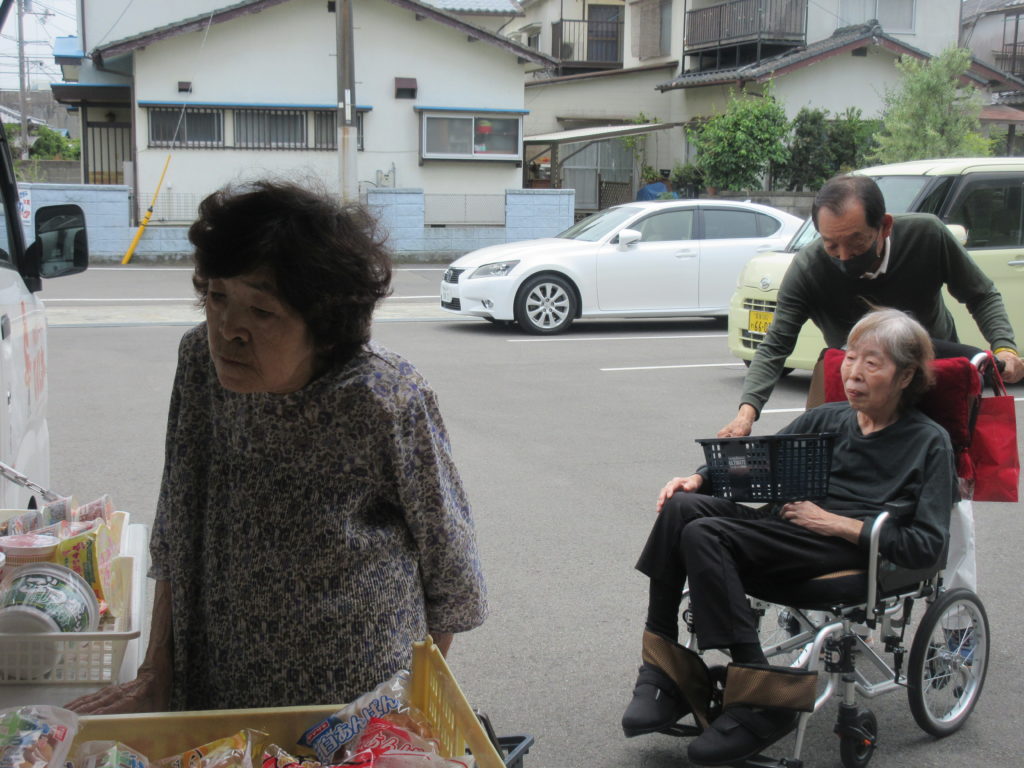 玄関先に「とくし丸」が到着すると、皆さんの表情がぱっと明るくなります。