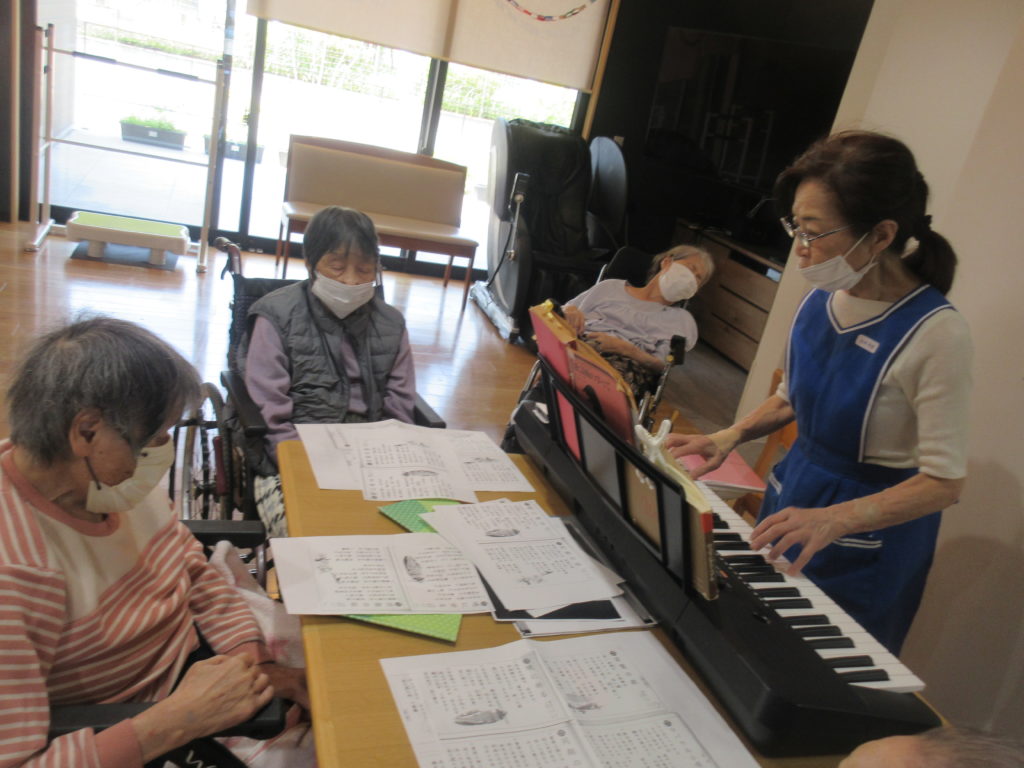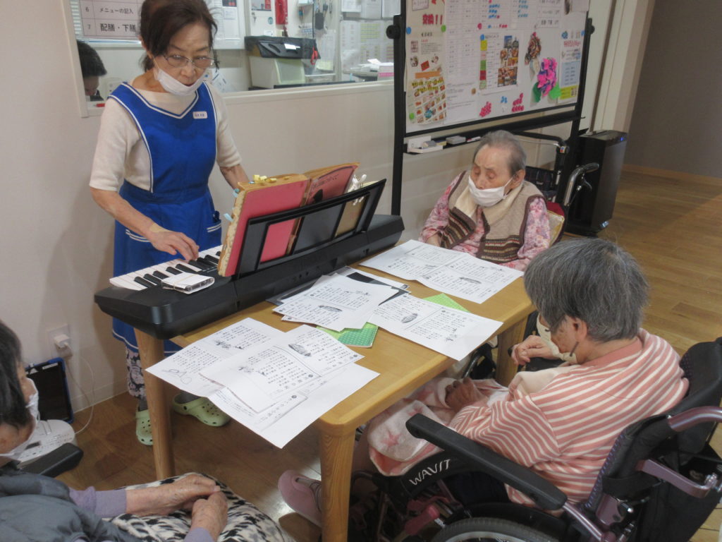 キーボードの優しい音色に合わせて、皆さんのよく知る季節の歌や唱歌、歌謡曲を歌い、心がひとつになる時間となりました。