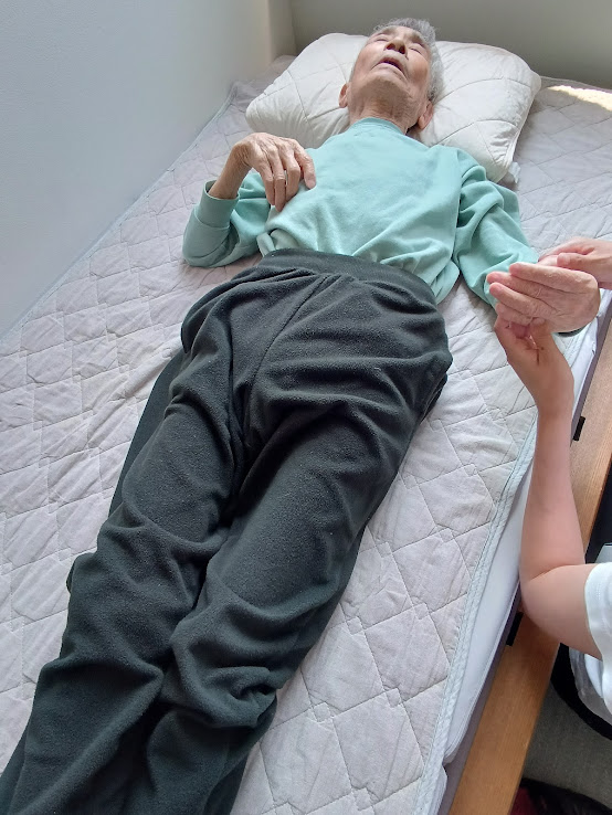 認知症マフを装着しながらの