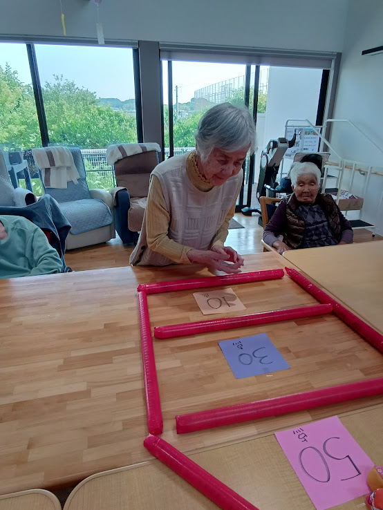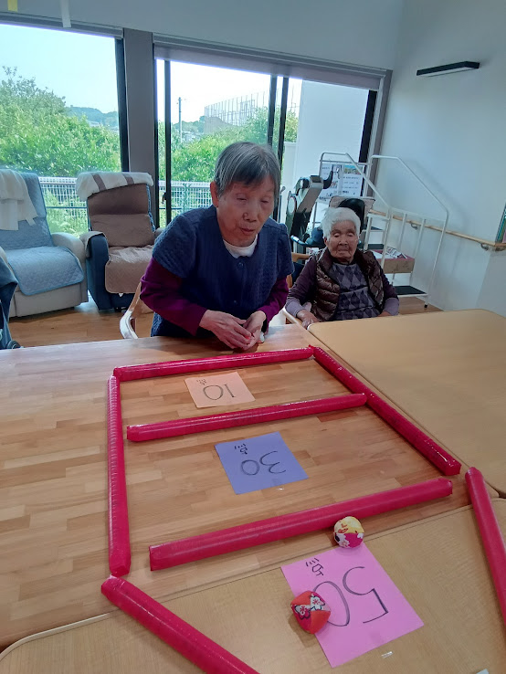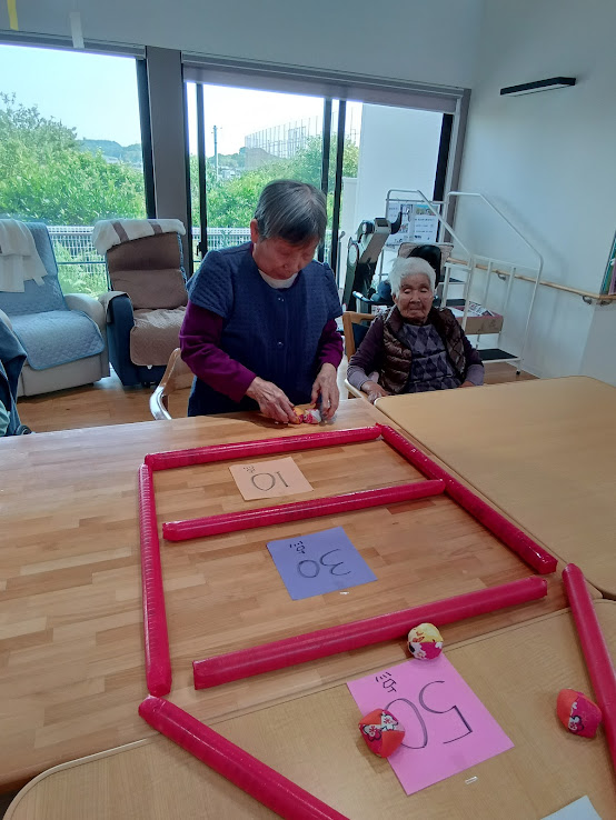 お手玉が入った得点を競うゲームです(o^―^o)ニコ