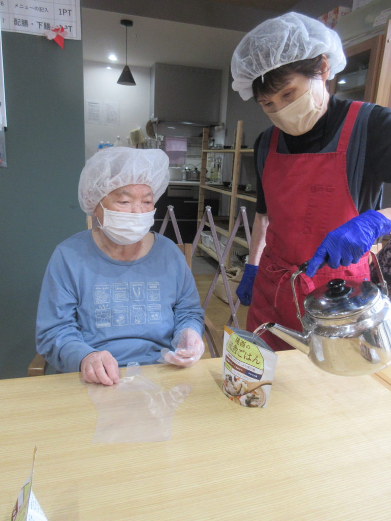 職員が熱いお湯を注いで15分で食べれますよ!と