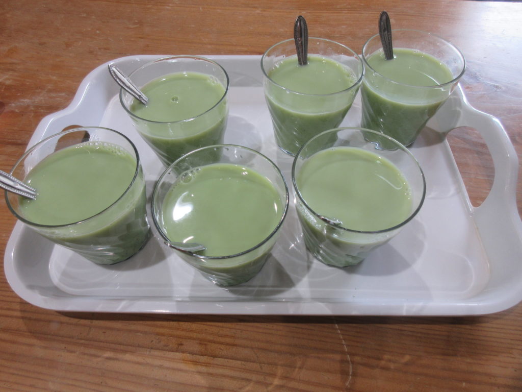 抹茶にガムシロップ、牛乳を入れ
