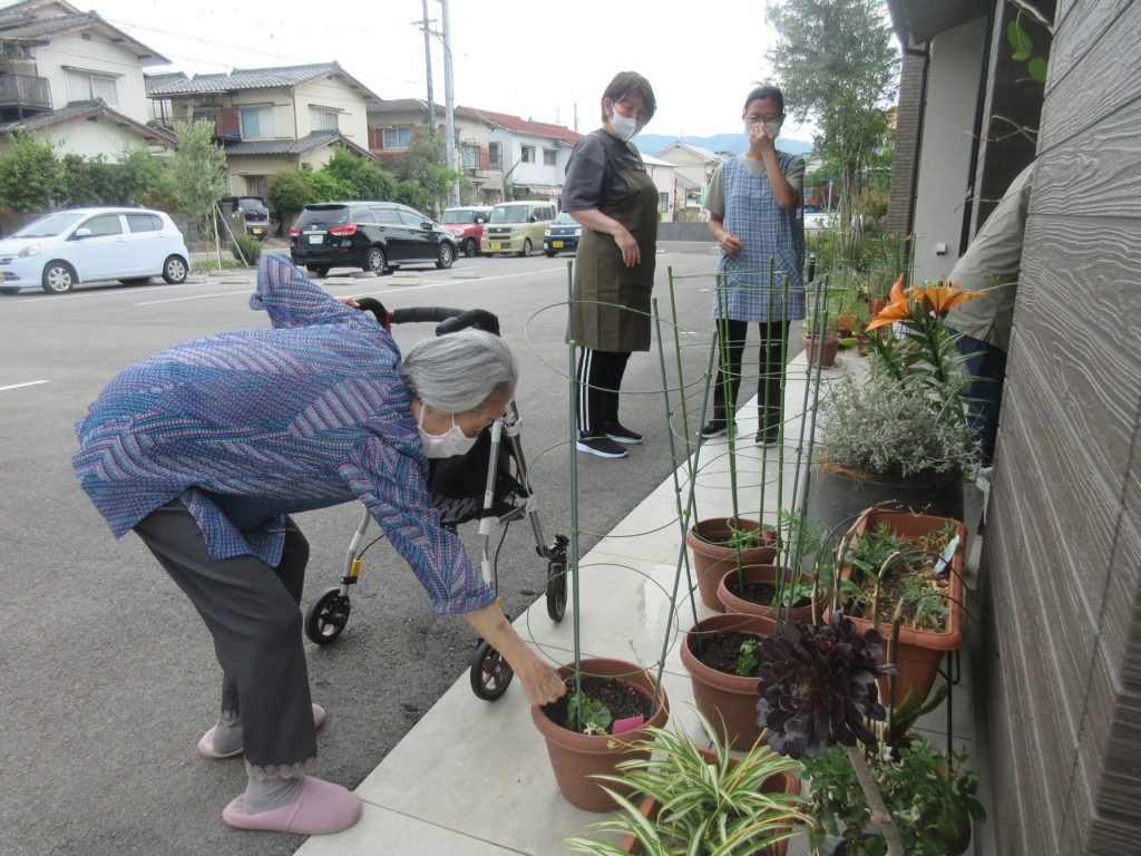 毎日の水やりを欠かさず、大切に見守る利用者様の愛情が、双葉となり、やがて花へとつながっていくのでしょう。