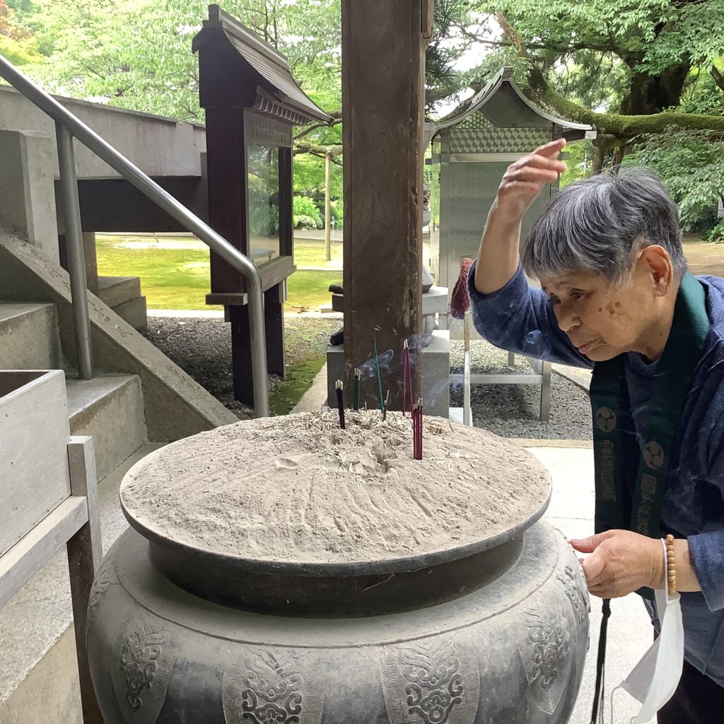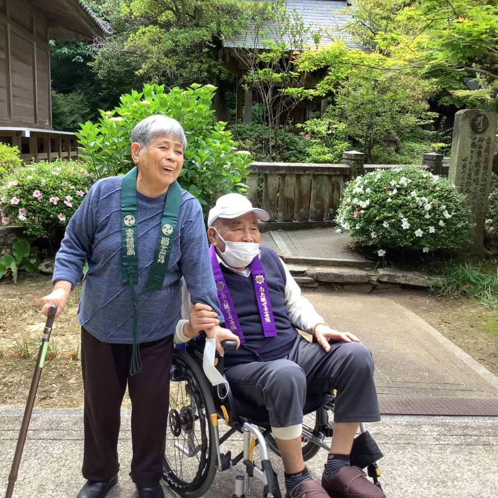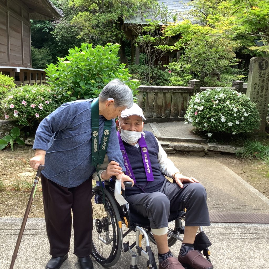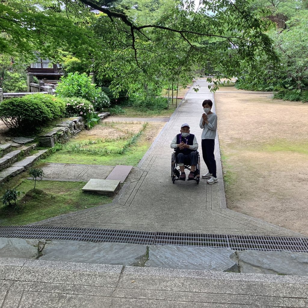 手を上げて「ここから拝んどるけんなー!」と一緒に行った利用者さまの分も拝んでくださいました🙏