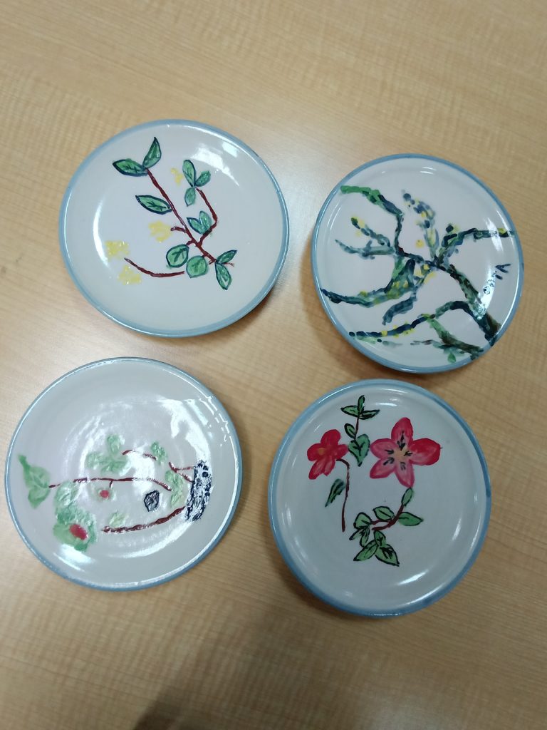 以前絵付け教室に参加された4名のご利用者様のお皿が
