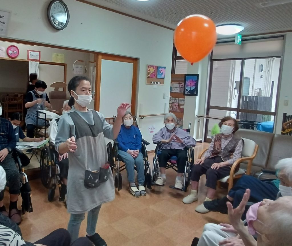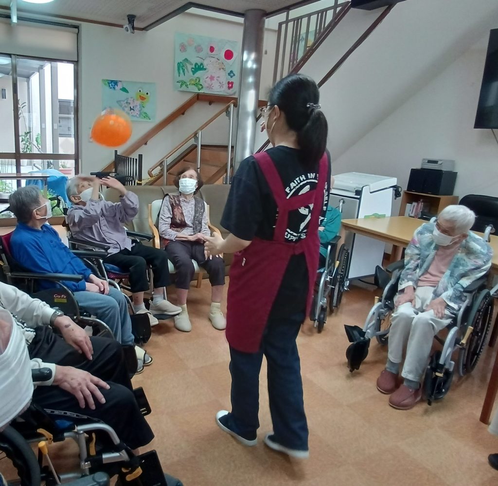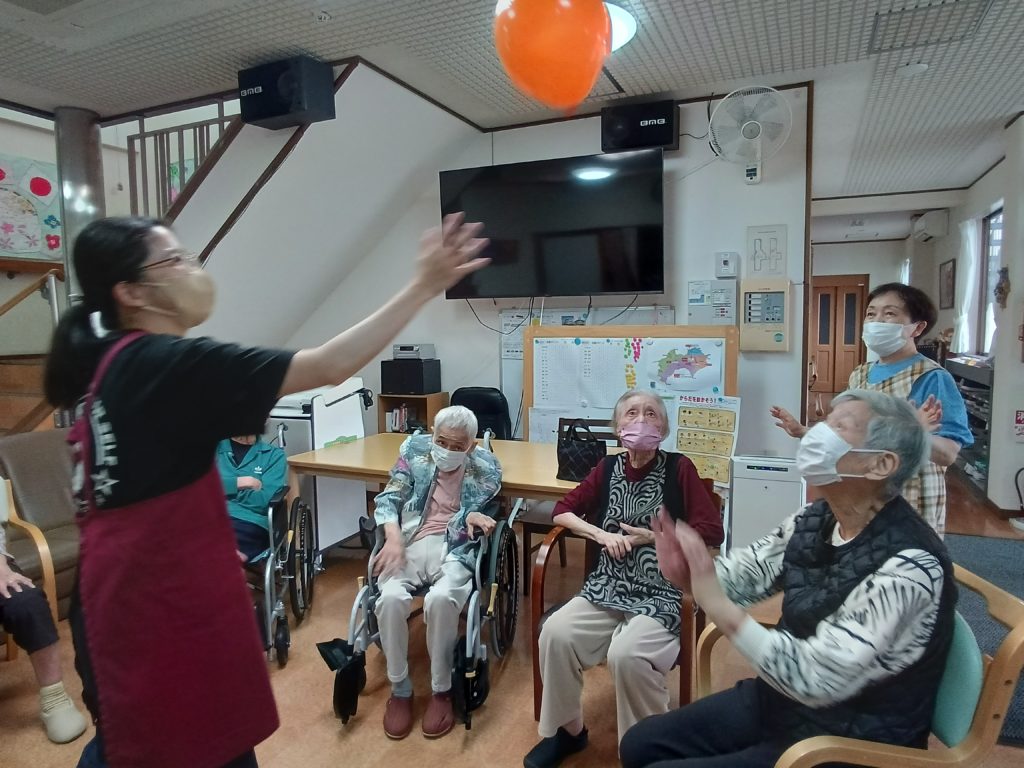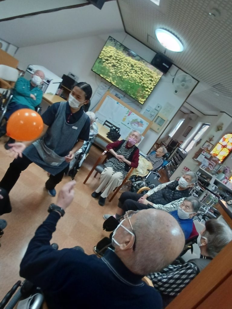 今日のレクリエーションは風船バレーです!