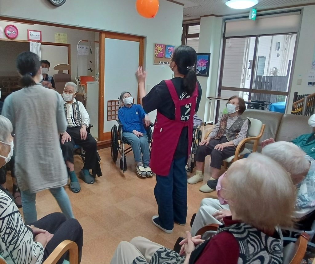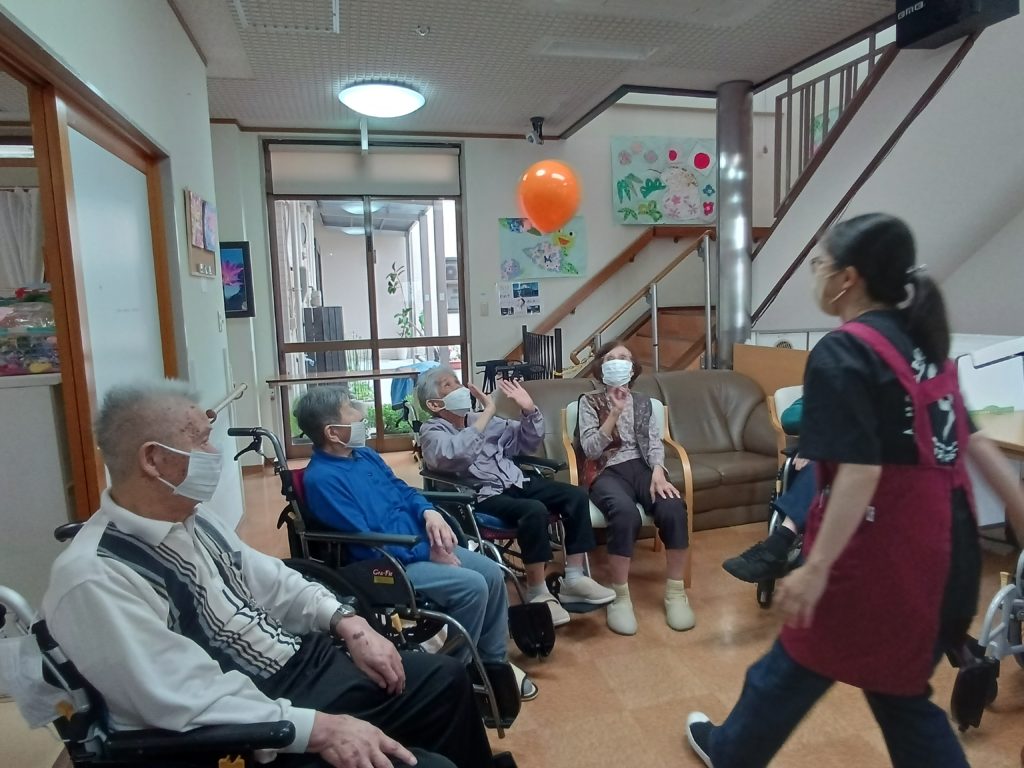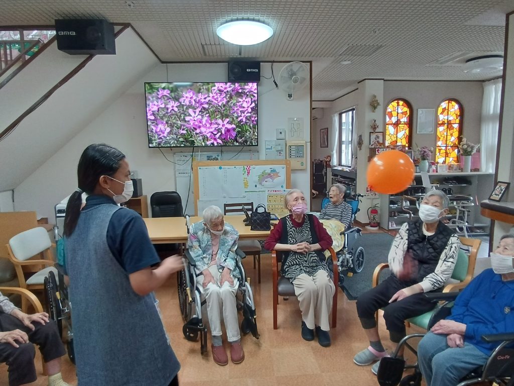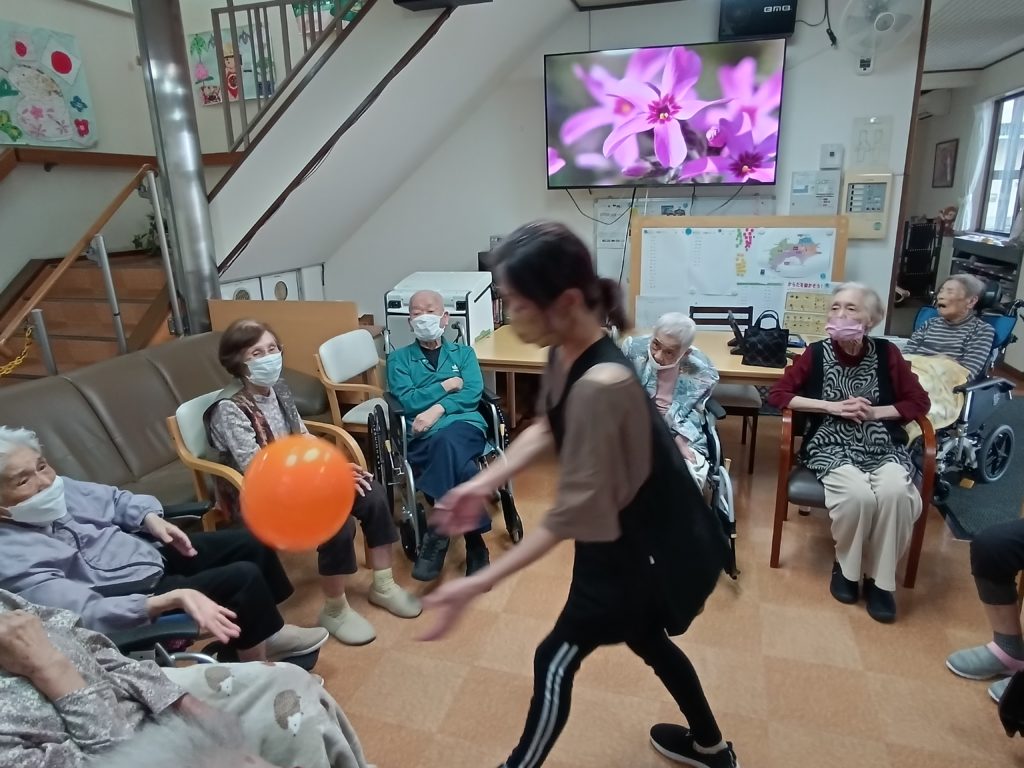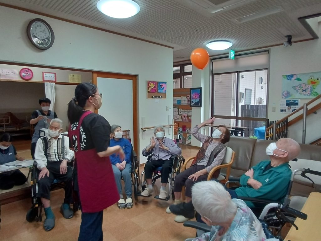 今日のレクリエーションは風船バレーです!