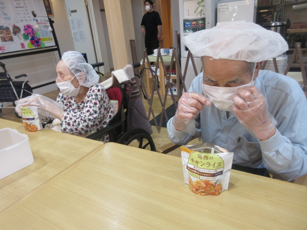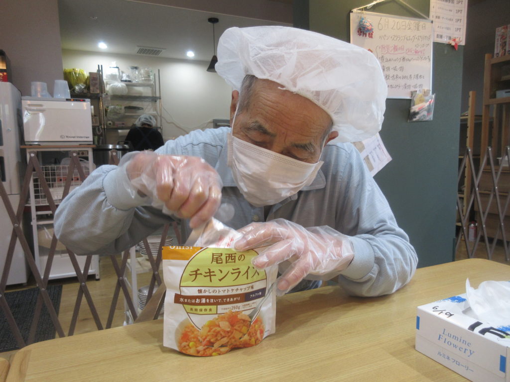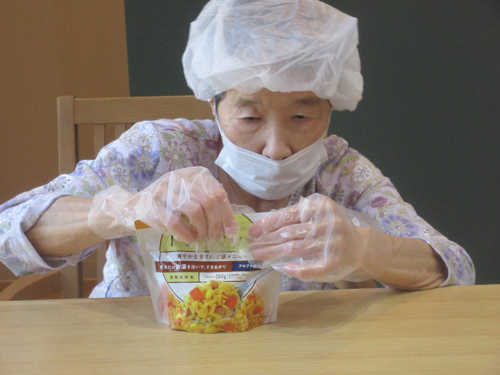 いつ起こるかわからない災害に備えて、こもれびの家すずらんでは「防災の日」を設け、非常食の体験を行っています。