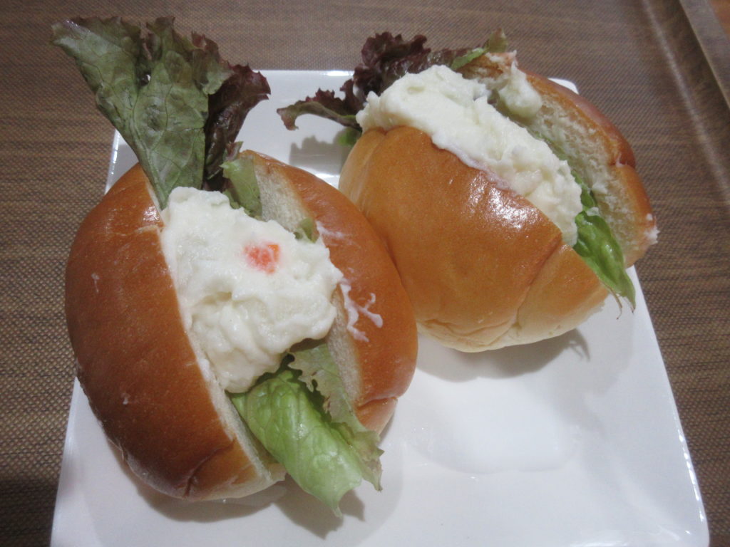 メニューは「ロールパンのポテトサラダ&サニーレタスサンド」です。