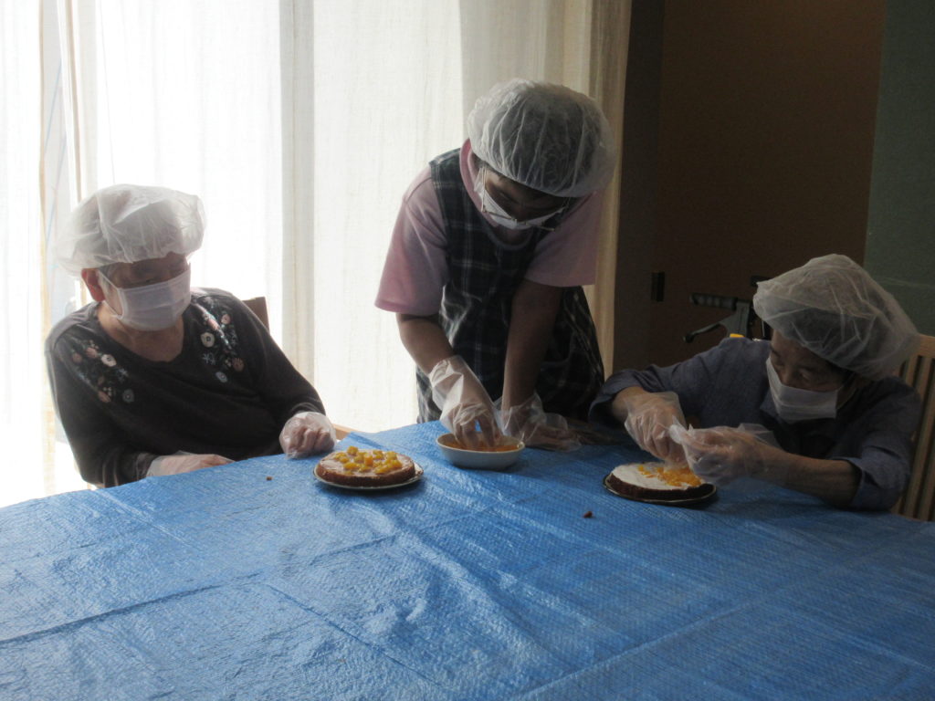 みんなで力を合わせてケーキ作りにも挑戦し、笑顔いっぱいのひとときに。