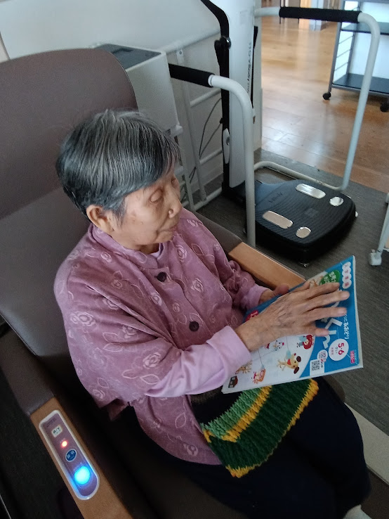 可愛い本を笑顔で読まれていて