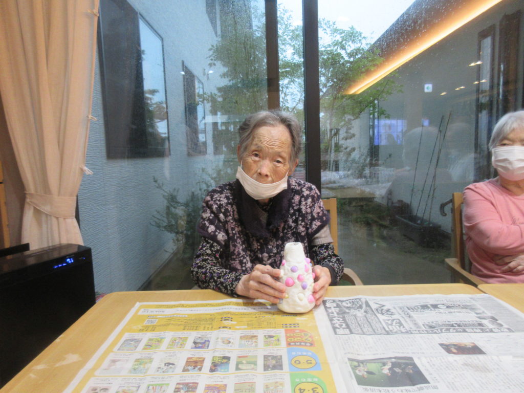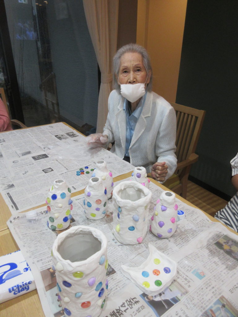 紙粘土をこねる感触を楽しみながら、個性あふれる花瓶づくりがスタートしました。