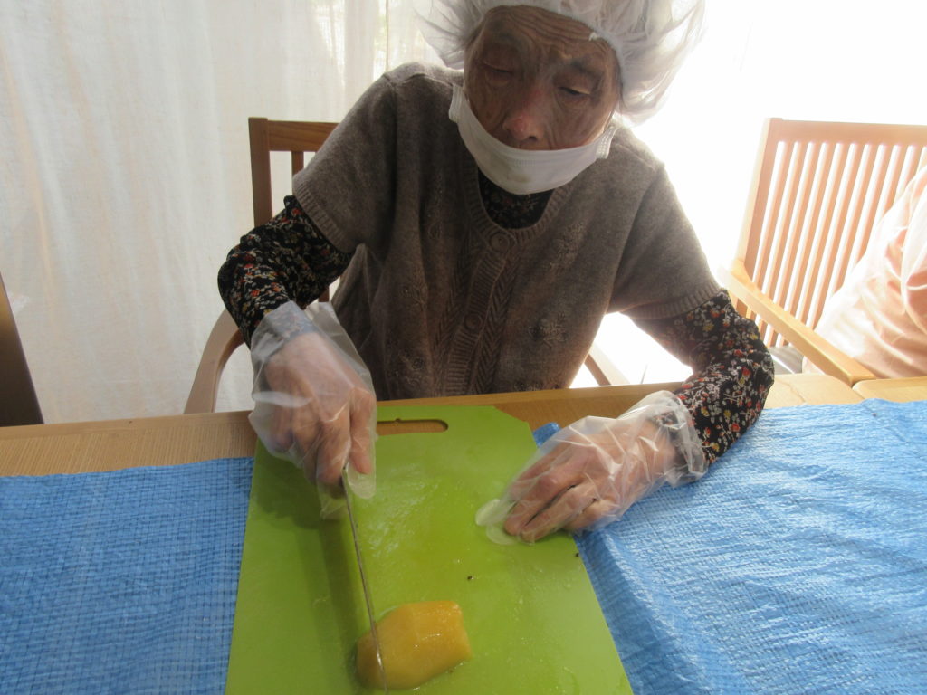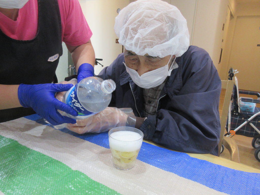 本日のレクリエーションは、皆さんお待ちかねの「フルーツサイダーづくり」。