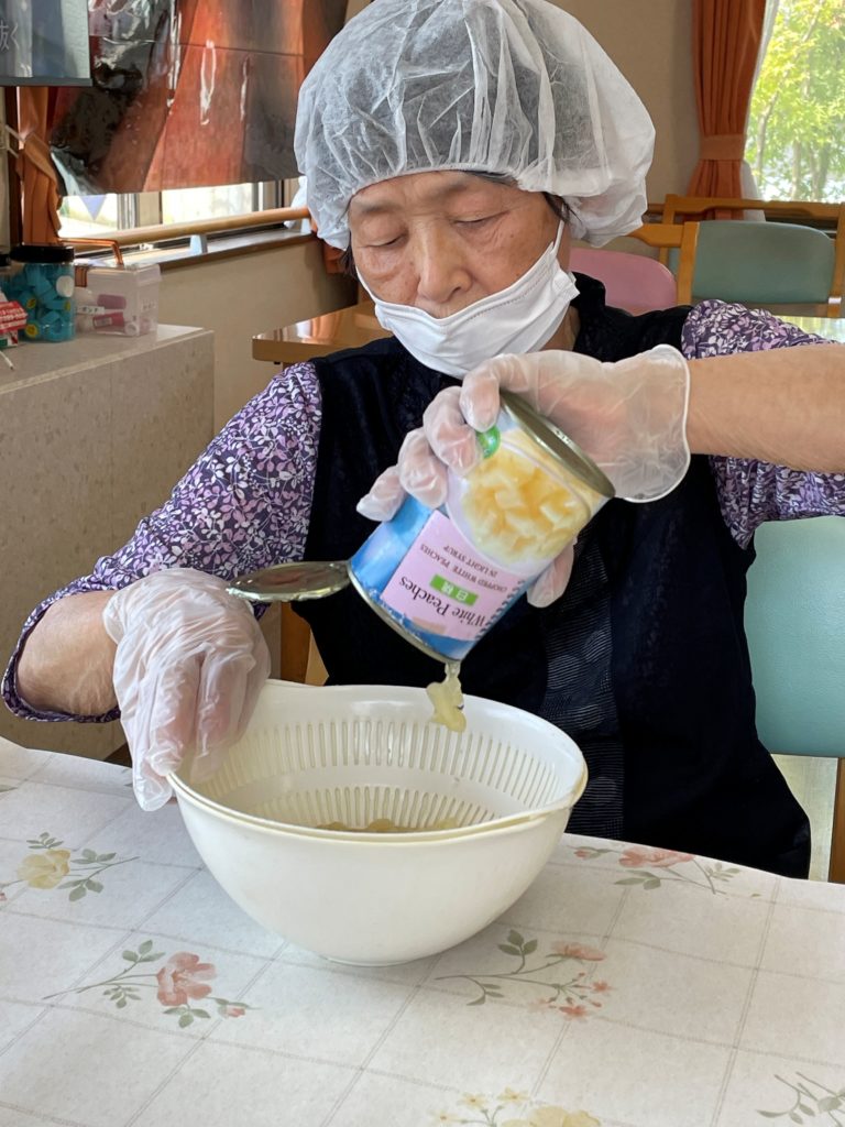 フルーツ缶を缶切りで開けて
