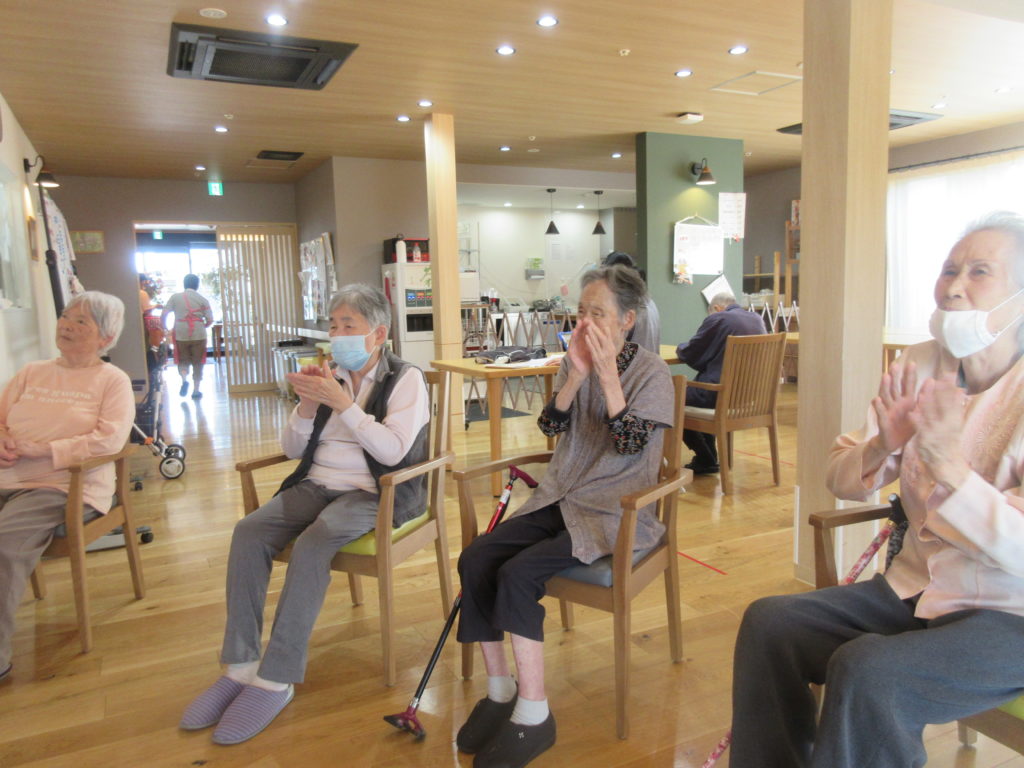 施設という日常空間が、一瞬、笑顔に満ちた小さなパーティ会場になったようなひとときでした。