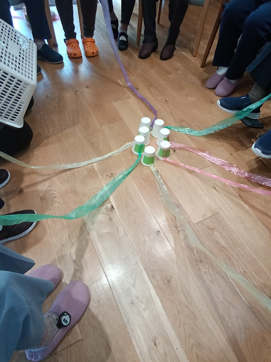 カラーナイロンテープを紙コップに付けて