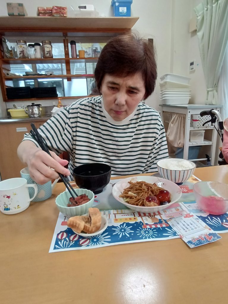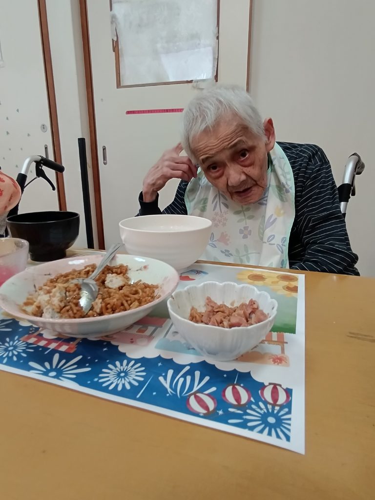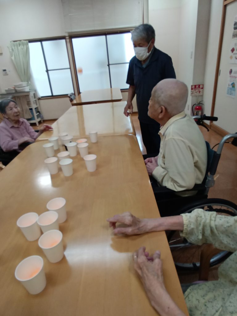 2025.08.07 すずらん通り 夏祭り食事&紙コップでピンポン玉ゲーム 昼食で、夏祭りメニューを美味しく頂きました(#^^#) ・焼きそば ・屋台の焼き鳥 ・スイカゼリー ・ミニたい焼き 午後は、紙コップに ピンポン玉を入れるゲーム(‘ω’)ノ 簡単そうに見えて 反動で入る事が難しかったですが 楽しまれました☺ 記事一覧へ戻る 各施設ごとのすずらん便りはこちらから