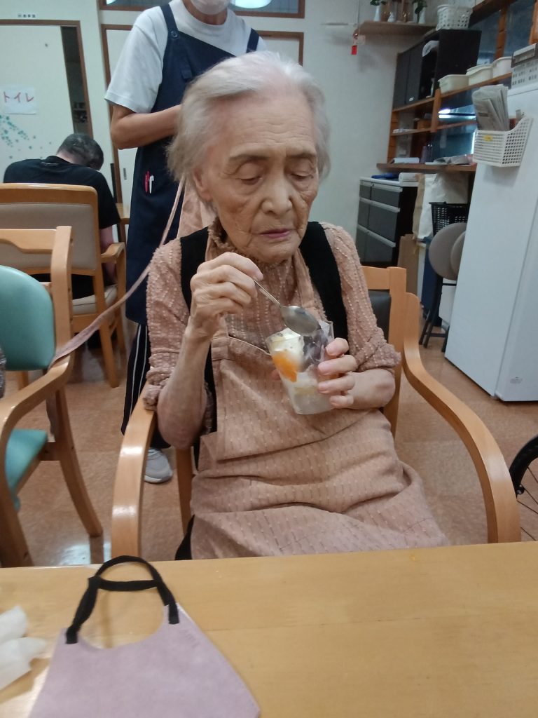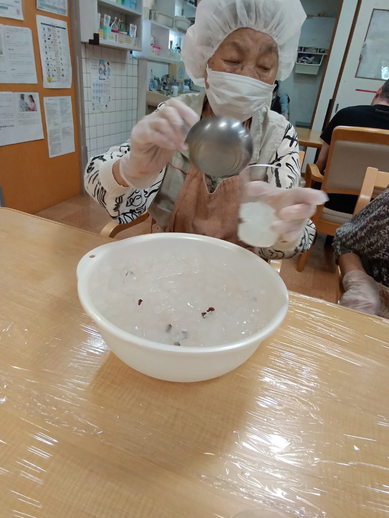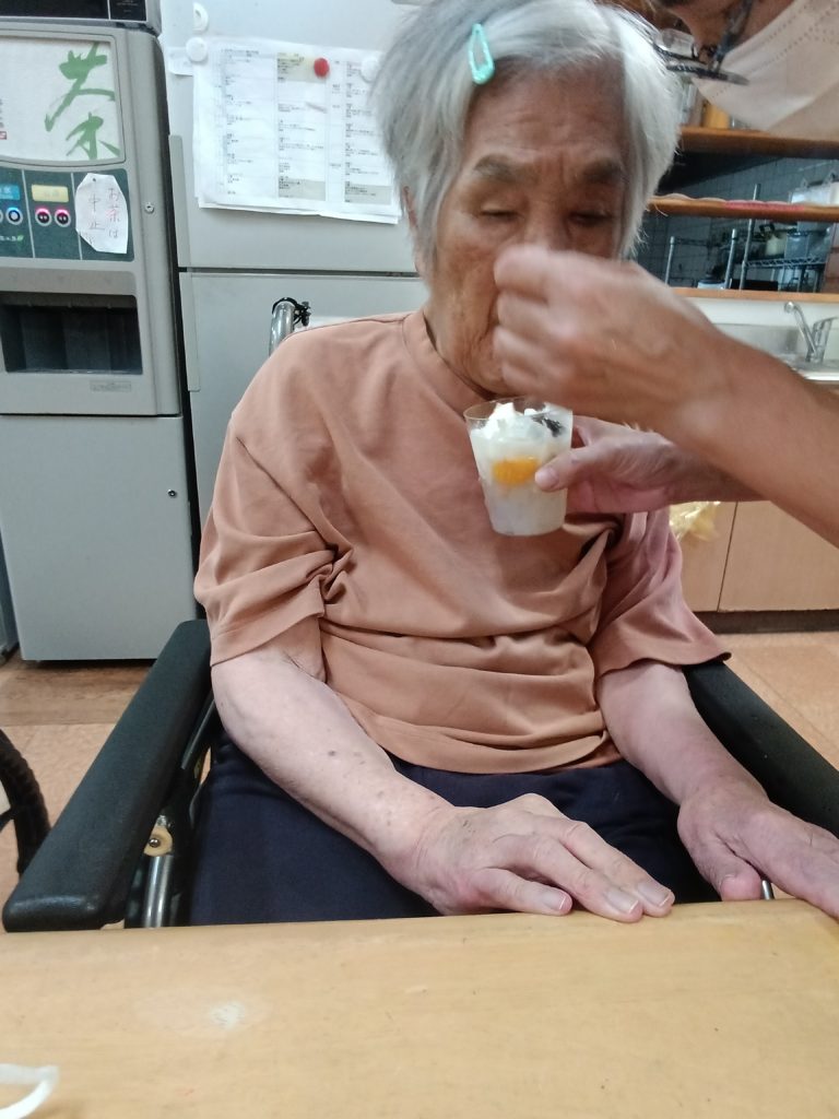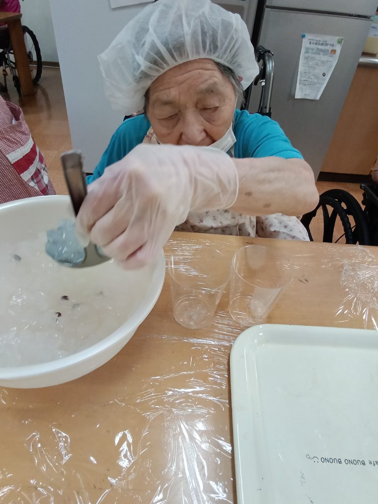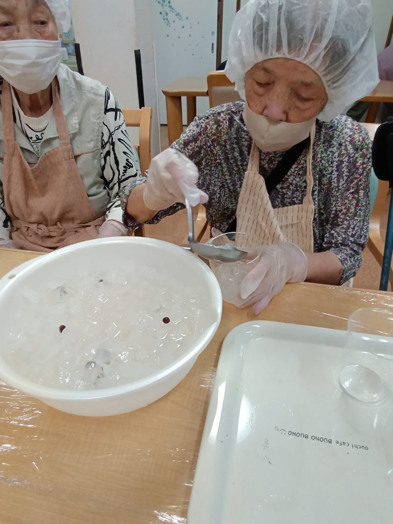 2025.08.08 すずらん通り あんみつ作り おやつの あんみつ作りをしました!(^^)! エプロン・帽子・マスク 手洗い・消毒し 職員が開けた、みつ豆缶詰を ボウルに入れて ミカンの汁をきり 容器に、みつ豆→ミカン→あんこ→アイス→ミカン 盛り付けの見本を作り 皆様と一緒に盛り付け 美味しく頂きました(^^)/ 記事一覧へ戻る 各施設ごとのすずらん便りはこちらから