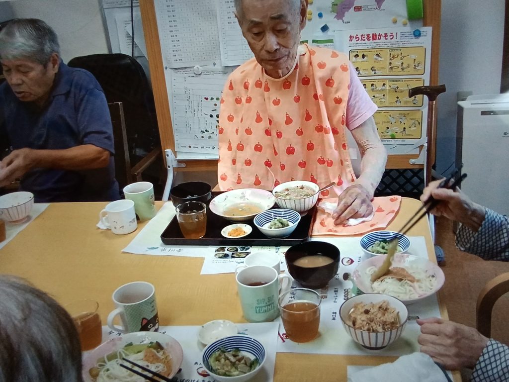 2025.08.16 すずらん通り 郷土料理~香川編~ 今日はの昼食は、 香川の郷土料理を召し上がられました( *´艸`) 香川は、讃岐うどんですが・・・( ^ω^)・ ・いりこご飯🍚✨✨✨ ・茄子そうめん ・わけぎ和え ・えび味噌汁 ・冷やし飴 🎵美味しく頂きました(#^^#)🎵 記事一覧へ戻る 各施設ごとのすずらん便りはこちらから